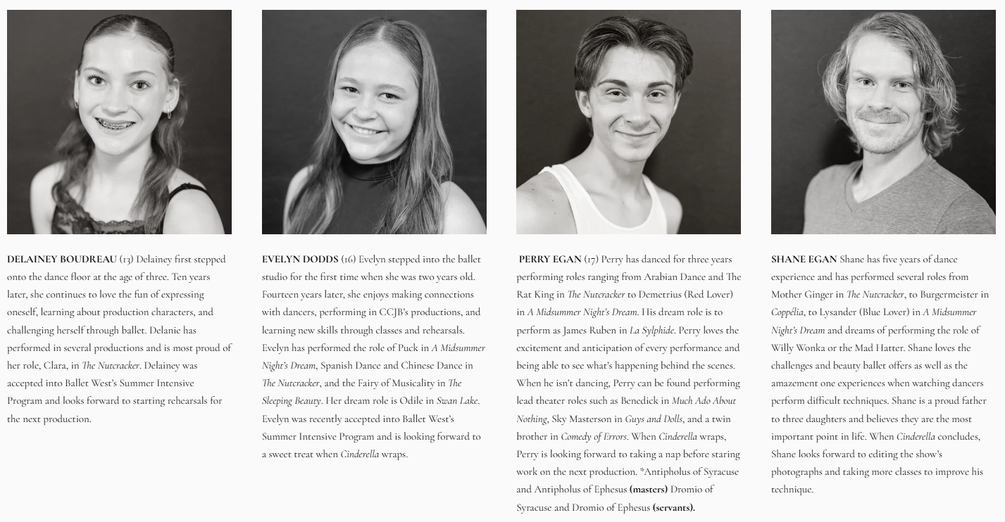 We are delighted to welcome you to our production of Cinderella. Cinderella’s story is filled with humor, romance, and choreography that traces from early versions in 1813 to Sergei Prokofiev’s 1945 version. This beloved ballet reminds us that kindness, perseverance, and a little bit of magic can transform even the most ordinary moments into something extraordinary. Our dancers and artistic team have worked with great dedication to bring this timeless story to life, and we are honored to share their talent and passion with our community.